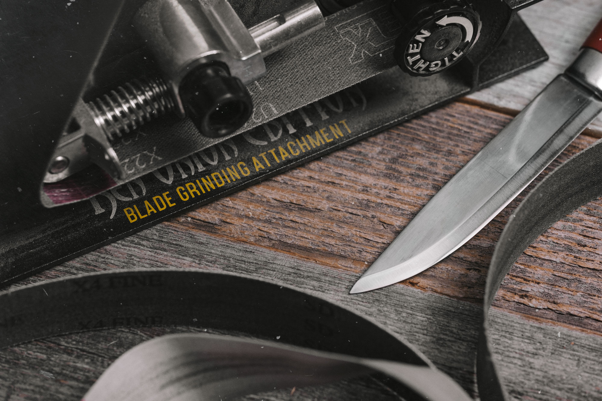 - Используя настольную точилку в виде зафиксированного на пластиковой основе абразива, подкладывайте под изделие полотенце. Это уменьшит скольжение, повысит удобство работы и положительно скажется на конечном результате.