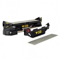 Точильная поверхность устанавливается на специальную платформу, которая крепится непосредственно к основанию. Благодаря подвижным металлическим стержням, основание устойчиво держится на любой ровной поверхности даже без дополнительных присосок. Платформу с точильными камнями можно установить в двух положениях в зависимости от того, какой нож вам необходимо заточить. Съемные направляющие угла предполагают заточку для кухонных ножей под углом 17° и прочих, в том числе и туристических, под углом 20°. Алмазных камня в наборе — два. Для более грубой заточки используется камень с зернистостью 320 грит, а для возобновления остроты того, который лишь немного затупился — 600 грит. Оба камня легко устанавливаются на платформе. Сама платформа — подвижная. Эта особенность позволяет выдержать установленный угол заточки на протяжении всей длины лезвия.